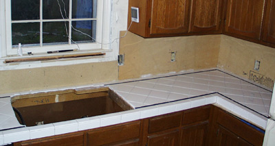 to match the countertop tiles. I used a single stalk faucet with a pullout